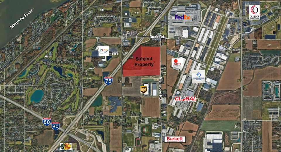 Highway frontage lots on Glenwood Road near the Buck Road intersection. Property has exposure to heavily traveled I-75 and fronts on Glenwood Road just south of Buck Road. Adjacent to the Ampoint Industrial Park, and near the Fed Ex facility, Penta Career Center, Bass Pro Shops in the Crossroads and 5 miles from Downtown Toledo.