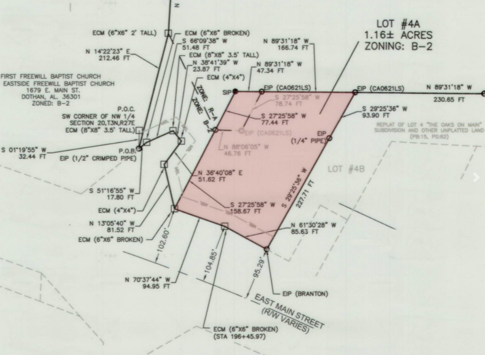 Outparcel to a potential large mixed-use development. Located in a fast growing area in SE Dothan near the newly constructed Starbucks and Amazon Distribution facility. Positioned near the 4-way lighted intersection of Ross Clark Cir & Hwy 84 E. Main Street. 1,300± feet from SE Health which staffs over 350 physicians and 2,700+ employees and 2 miles from AL College of Osteopathic Medicine. Various medical offices, pharmacies, restaurants, grocery stores and plenty of retail shopping are nearby.