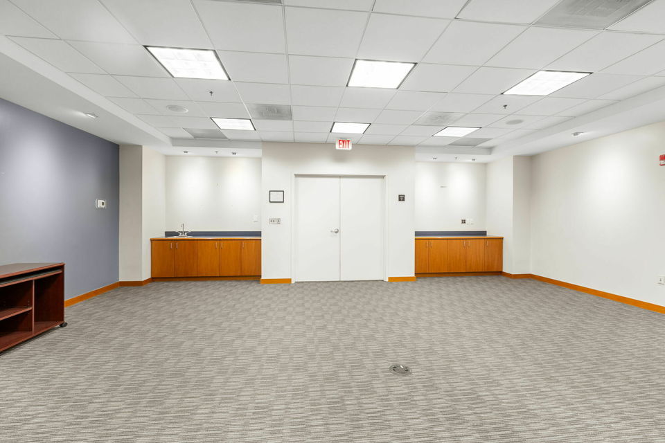 The space features a welcoming reception area, a large conference room that may be divided, a dedicated training room, 10 private offices, a bullpen/open work area, and a convenient kitchenette—supporting both collaborative and executive work environments.