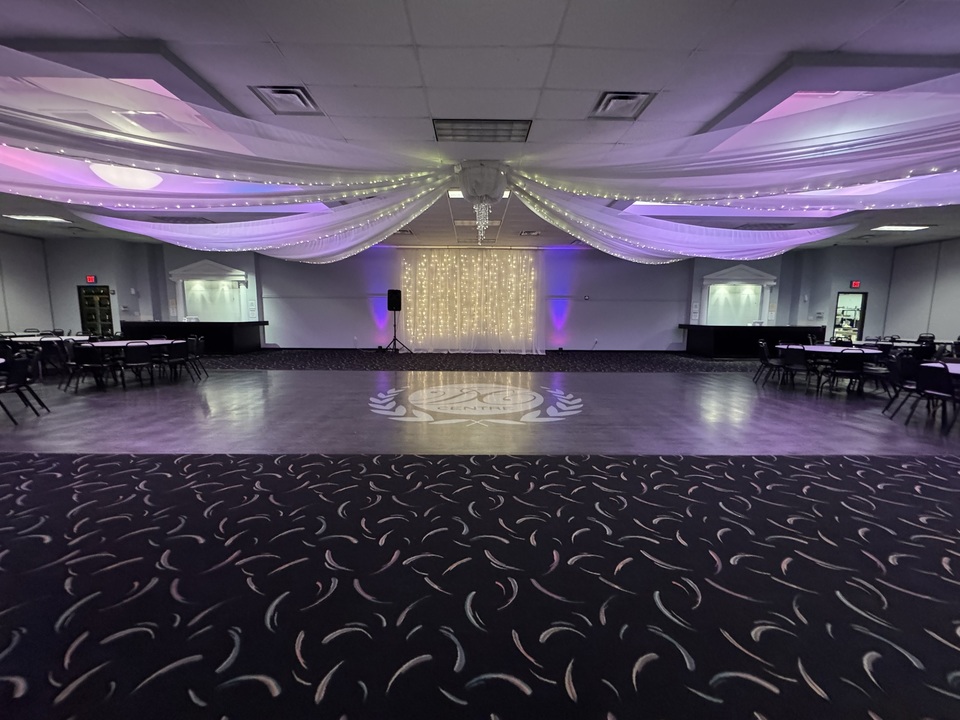 - Current use is an event center with removable partition walls to accommodate groups of all sizes