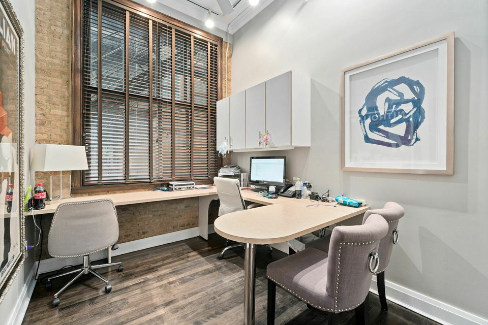 - The front corner windows provide panoramic views of State Street and the Palmer House, adding to the charm of this versatile unit