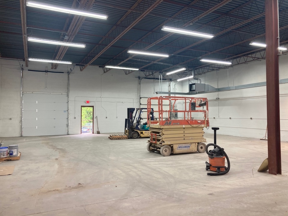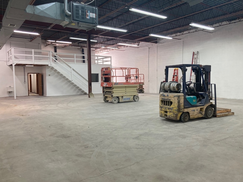 The unit has 1,500 SF of office which was recently painted. The layout includes 7 private offices (including one with a window into the warehouse), an open area, a closet, and two restrooms. The warehouse features a slop sink and additional mezzanine storage above the office. There is Reznor heating throughout the warehouse.