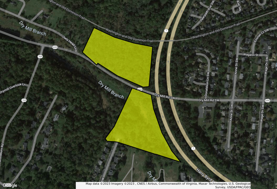 This exceptional property is a rare opportunity to own two parcels of land situated along the popular W&OD Trail in the Town of Leesburg, VA, with access to Dry Mill Road and Route 7. The 14+ acre property is ideally located for a variety of development projects, especially breweries and wineries. The parcels feature a beautiful, tree-lined entrance from Dry Mill Road, which runs through the property, and offers an outstanding investment opportunity for those looking to develop in one of the most sought-after locations in Northern Virginia. With its prime location, ample acreage, and numerous development opportunities, this property is sure to attract a wide range of buyers and investors. Water and Sewer available.