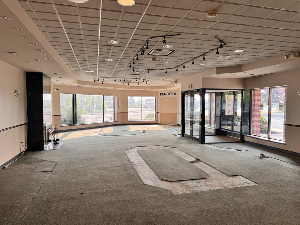 Freestanding retail building available for NNN lease. The space is built out as a jewelry store, with an open floor plan and display cases. The building is located on a corner lot, and has building signage and pylon signage. There are 16 parking spaces on the lot as well.