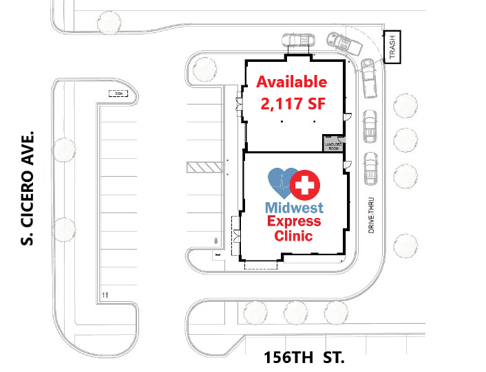 2,117 – 4,700 SF available for lease, including a highly desirable endcap with drive-thru capability. This site is part of a vibrant mixed-use development featuring newly built townhomes and over 300 residential apartments, both on-site and in the surrounding area. The center offers excellent visibility with over 100 feet of frontage along S. Cicero Avenue, which sees more than 25,400 vehicles per day (VPD). Tenants benefit from ample signage opportunities and generous parking. The property is surrounded by a strong mix of national and local retailers, including restaurants, fuel stations, and retail centers.