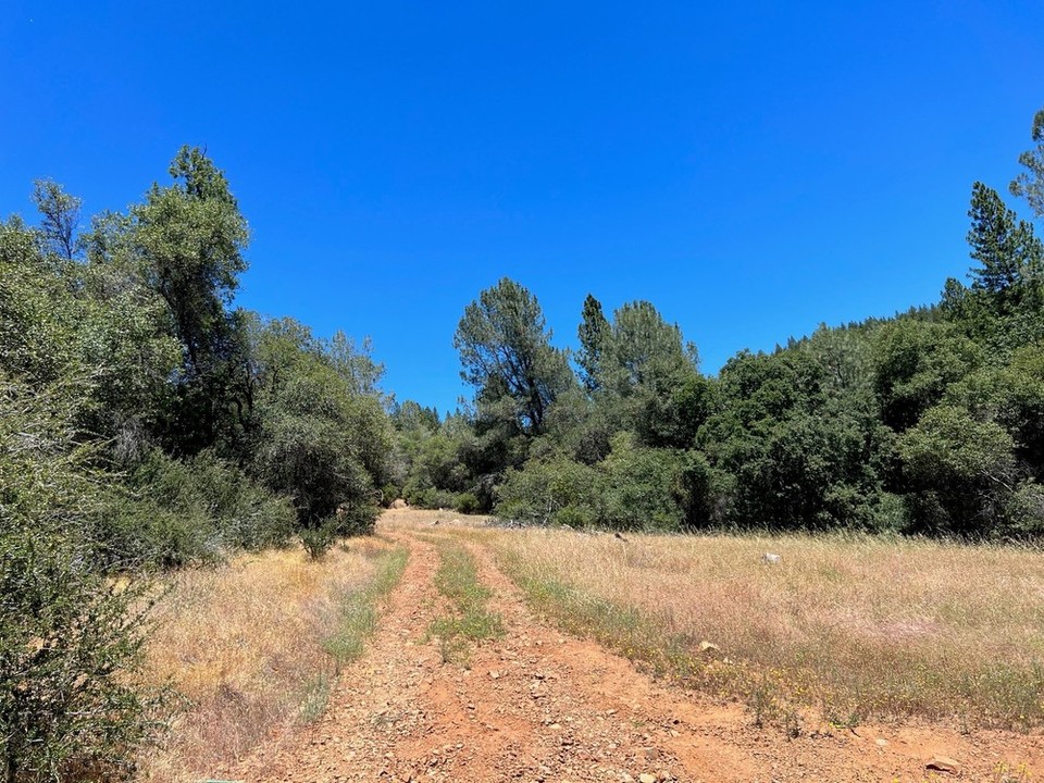 From Willow Glen Rd, head onto Begonia Way (cross the bridge on a paved road). Keep left at the “Y” onto Sunset Rd (next to the long fence on the left), then 0.25 mile later keep right at the “Y” onto Sunset Rd and continue passed the antique fire truck. then 1,200’ later keep right at “Y”, then immediately (300’) make a left at the “Y” just before the long fence on the right side. Continue 1,000’ up where you’ll pass a large Yellow Water truck and once passed make a right at the “Y” (photo’d). About 750’ up the road you’ll pass thru an open gate onto the property with an entrance on the right side (sharp right turn). The level area is about 500’ down the road from this point.