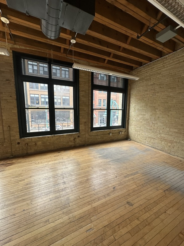 - Loft style office suites with exposed cream city brick and wood beams