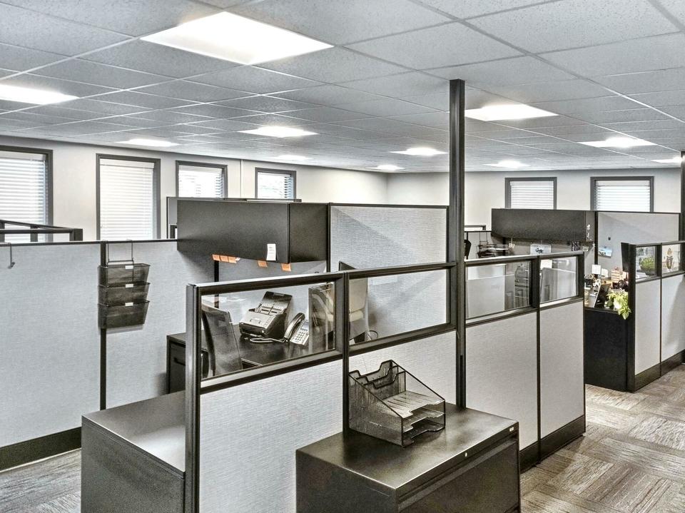 The building features a functional and efficient layout across two floors, connected via elevator. The upper level includes a welcoming reception area, private offices, conference and meeting rooms, open workstations, and a stylish breakroom/kitchenette—all recently renovated with updated lighting, flooring, and commercial finishes. The finished lower level adds versatility with additional office space, restrooms, a large training or flex-use area, and storage options. The entire space is delivered vacant, in very good condition, and includes optional commercial-grade office furniture for immediate use.