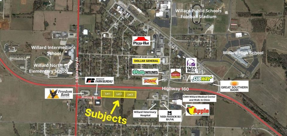 Thank you for viewing this property located in Willard Missouri on Proctor Road conveniently just off Highway 160. Neighboring businesses include: Missouri Farm Bureau, Freedom Bank of Southern Missouri, Sonic, O'Reilly Auto Parts, Casey's, Subway, Taco Bell and many more local and national businesses.