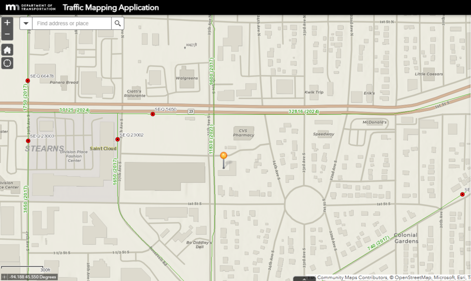 30 25th Ave S. is positioned on one of St. Cloud’s busiest thoroughfares, just off Division Street—ensuring excellent traffic exposure and high brand visibility. The property sits within a vibrant retail corridor anchored by national brands such as CVS, Dairy Queen, Walgreens, Caribou Coffee, Planet Fitness, and Popeye’s. Its location captures a combined traffic volume exceeding 44,000 vehicles per day, making it one of the area’s most visible and lucrative commercial nodes.