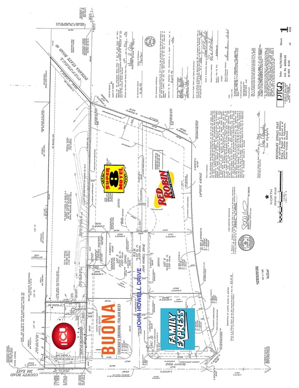This is a partially wooded lot offering excellent visibility along the northwest interchange ramp of S.R. 49 and LaPorte Avenue (S.R. 2). All utilities are available to the site which is ideal for a professional office or retail uses. Access is via McGill Drive and the new Buona Beef driveway to John Howell Drive. 2024 pay 2025 taxes $1,121.00. (Lot dimensions - 160' x 1,211.92' x 235'x 1,038')