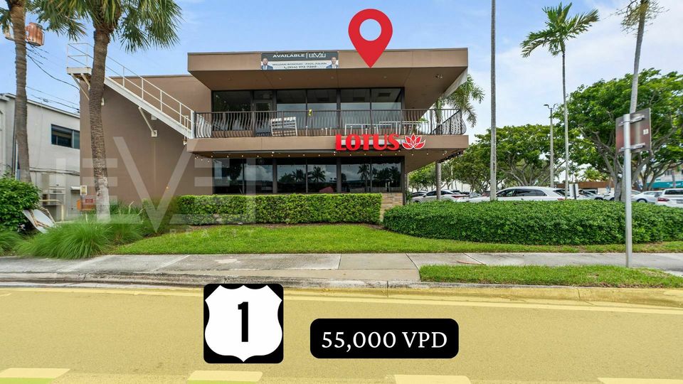 This unique two-story property is prominently located on the corner of Federal Highway, within a bustling retail strip center that offers ample parking. With hundreds of daily visitors to the plaza and over 50,000 vehicles passing by each day, your space will enjoy exceptional visibility. The building features panoramic hurricane impact windows with a spacious balcony overlooking Federal Highway, making it an ideal location for attracting attention and foot traffic.