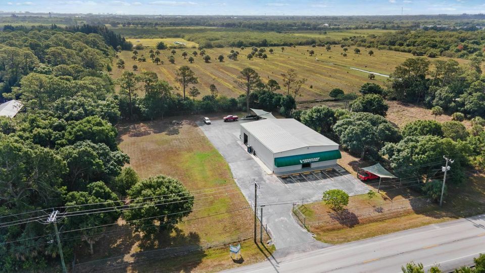 Excellent warehouse and excess land setup along the growing corridor of King’s Highway in Saint Lucie County, FL. Just under 5,200 SF of warehouse and office space with additional mezzanine storage and covered outdoor canopies. The 1.64 acre site contains excess land that could be split off and sold, used for additional warehouse space, or used to store material, equipment or inventory. The building contains roughly 700 SF of high quality office area along with open warehouse with 18’ clear height, LED lighting, 12X12 rollup doors, and 3 phase electrical service. Site improvements include plenty of parking, wraparound asphalt drive, large rear asphalt paved pad, full property fencing, gated entry, and exterior security lighting.