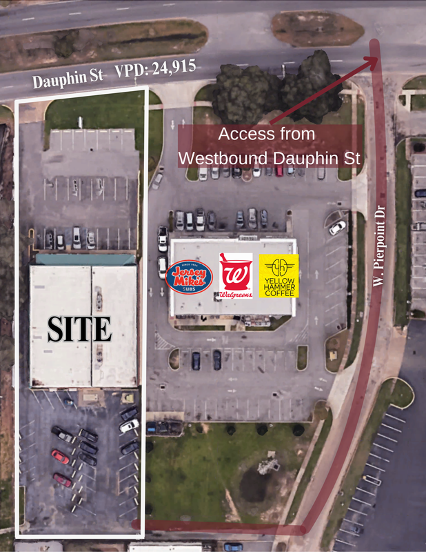 Centrally located on Dauphin Street less than 1/2 mile to I-65. Deeded access from rear of building to Pierpont Drive to allow east and west access to Dauphin Street via a crossover. 58 total parking spaces.