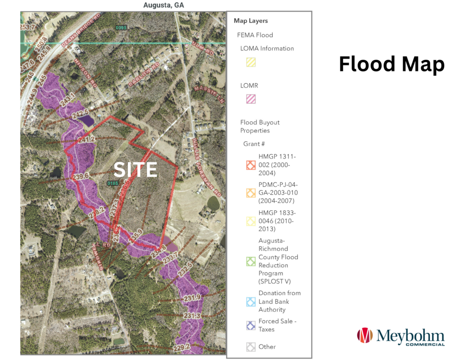 The site benefits from public water and sewer on-site, materially reducing upfront infrastructure risk and accelerating development timelines. Zoned A-5, the tract offers flexibility for residential entitlement strategies, subject to standard county approvals. Spirit Creek borders the southern and western boundaries, creating a natural buffer ideal for green space, trail systems, and amenity integration—features increasingly valued by today’s multifamily tenants.