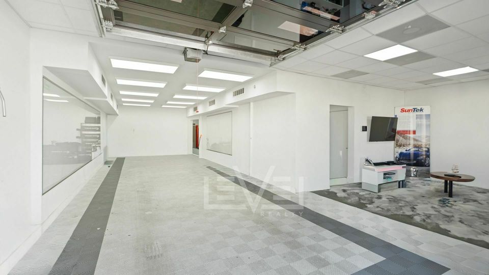 Rare opportunity to lease a 1,675 SF corner flex unit within a striking modern industrial building fully renovated in 2021. The property features a bold graffiti-style exterior design that gives the building a unique creative-industrial aesthetic, along with a new roof installed just two years ago. The unit offers a fully finished drive-in bay with an automatic glass roll-up door, bright LED lighting throughout, and a clean drywall buildout, creating a polished and functional workspace. The office area features beautiful tile flooring, a private finished bathroom, and a tankless hot water heater. A major highlight of the space is the professionally soundproofed office buildout, a $200,000 upgrade, with soundproofing installed from the flooring through the walls. This high-end corner unit combines modern design, premium upgrades, and flexible functionality, making it a perfect fit for a variety of creative, professional, or service-based businesses seeking a turnkey space in Oakland Park’s growing commercial district.