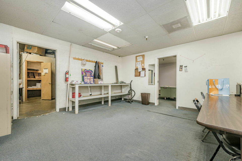 Large commercial building that sits on a large lot and could be converted into multiple uses including an event center, retail store, gym, or church.