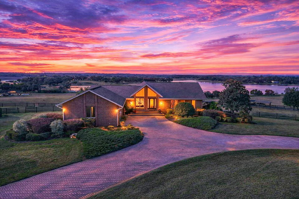 Welcome to an extraordinary hilltop estate in Dade City on nearly 33 acres of fenced, private land with sweeping views of Lake Pasadena and an impeccably detailed primary residence. The property encompasses fenced pasture and rolling land providing endless possibilities for agricultural enthusiasts to have horses, chickens, cows, sheep, goats and other farm animals, or who want to indulge in gardening, farming, boating, fishing or large-scale entertaining. The lake views and hilltop privacy create a serene timeless setting. The brick-clad home crowns the property, offering elevated panoramas and a striking curb presence. Enter the home on the main level the primary suite is a serene retreat with crown molding, a spa-like bathroom featuring a garden tub and separate walk-in shower, while a second bedroom currently used as an office and an adjacent guest bath complete the main level. The newly remodeled kitchen offers rich wood cabinetry trimmed in crown molding, beautiful granite countertops, a large island with cooktop, pull-out cabinets and drawers, and stainless KitchenAid appliances, plus a separate wine/beverage dry bar ideal for entertaining. The upstairs family room is warmed by a wood-burning fireplace, exposed wood beams, and expansive windows framing the property and lake beyond. The lower level expands living and entertaining options with a large great room anchored by a second brick fireplace, a huge bonus room, guest bath, and sliders that open directly to the grounds. Two generous downstairs bedrooms include a secondary owners’ retreat or mother-in-law suite with a private, spa-like bath and Jack-and-Jill configuration, bringing the primary house to four true bedrooms and four full bathrooms. Down the hill near the lake is a second home with 2 bedrooms perfect for extended family, guests, staff, or rental income. Dade city is a quaint town with a historic downtown featuring Old-Florida charm. The home is a few minutes off I-75 which has easy access to Wesley Chapel's shopping, restaurants, bars, Hospitals etc. Call today to view this spectacular property!