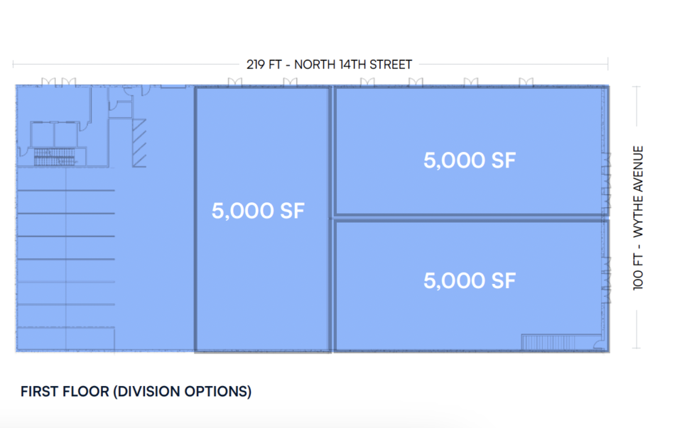 - Ground Floor: 22,000 SF Total with Divisions of 5,000 SF Available