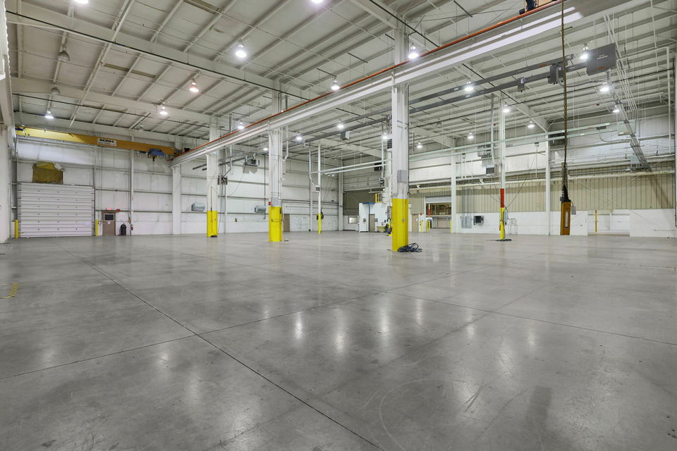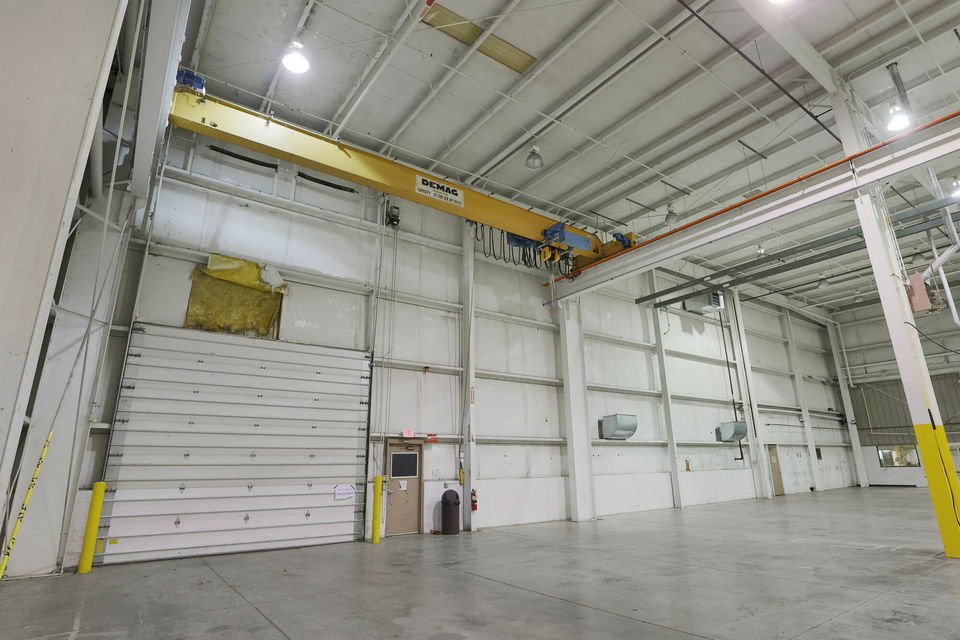 The office area features reception two conference rooms, six private offices, a lunch room, restrooms, and a kitchenette, providing a comfortable and efficient layout for daily operations. The warehouse is fully climate-controlled and includes ±15,000 SF of high-bay space (30' clear) with two 15-ton cranes and a ±17,330 SF warehouse space with 17' clear. Additional features include one dock door with a 30,000-lb. mechanical leveler, bumper and shelter, two drive-in doors (16' x 14' and 10' x 12'), and column spacing of 24' x 45'.