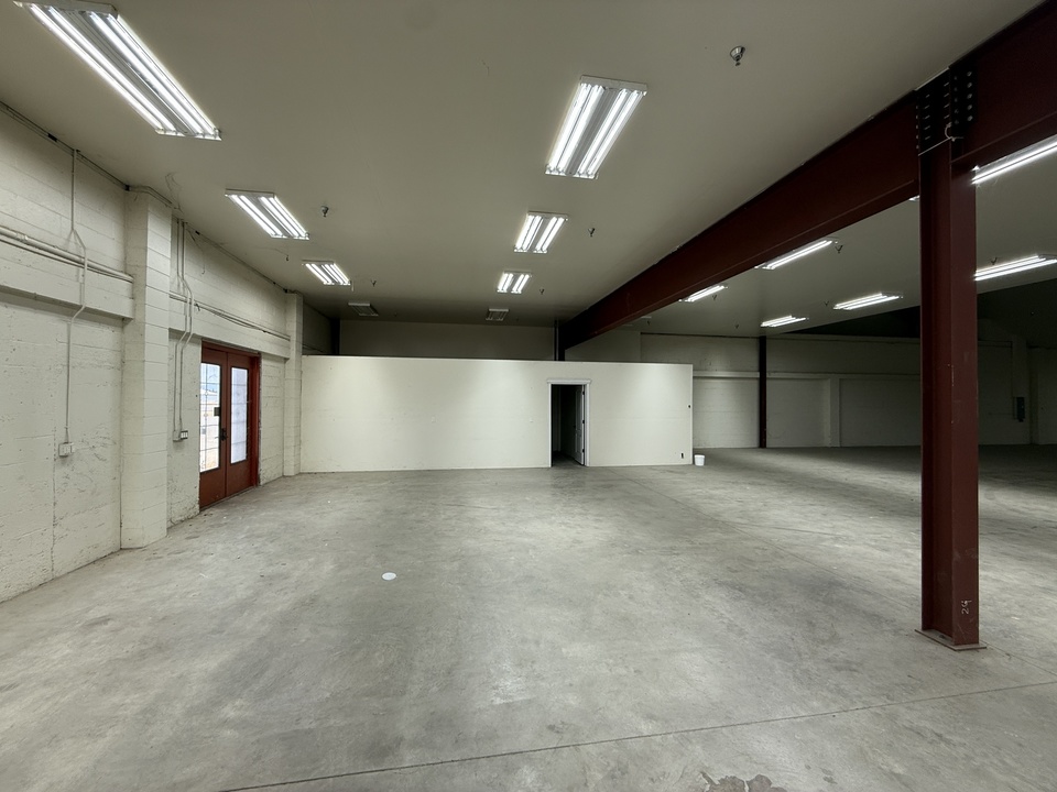 - Suite B features warehouse space with two ground-level roll-up doors.