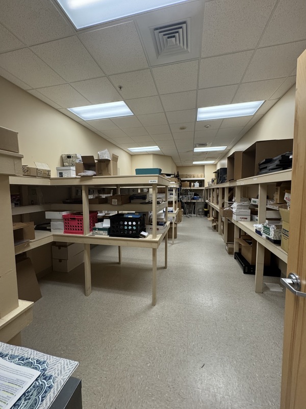 - Efficient mailroom setup with ample workspace and organization—ready to handle high-volume operations daily