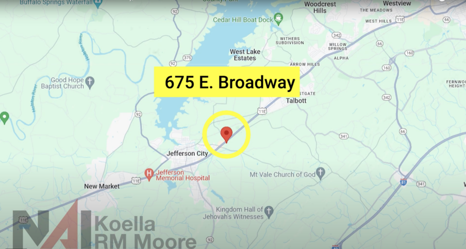 Highly visible to customers on the main thoroughfare (E. Broadway) through Jefferson City. It's location is adjacent to other medical, offices, and national retailers such as Lowe's, Walmart, Cato, Dollar Tree, and many restaurants. Jefferson City is located in the corner of East Tennessee and the Foothills of the Smokies. Home to Carson Newman University and within minutes to Cherokee Lake & Douglas Lake.