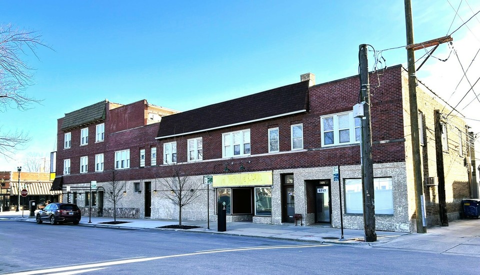 - Corner mixed-use building in Edison Park retail corridor