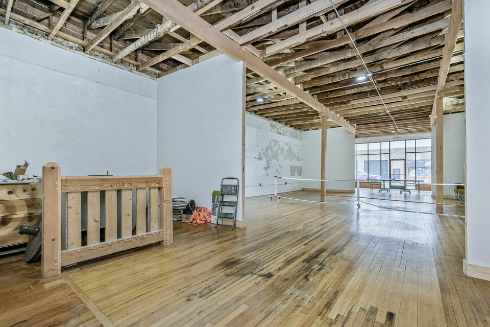 - Features include a classic barrel ceiling, hardwood flooring, wet bar, fireplace, open work spaces, showroom freight elevator