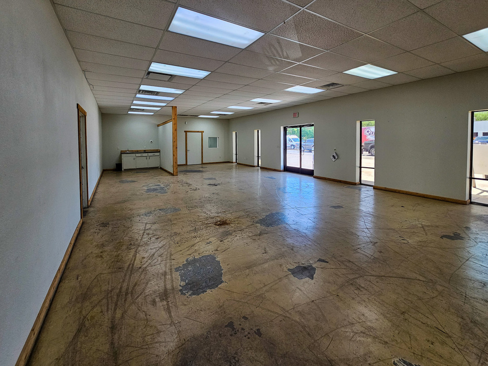 The front area is approximately 1,300 sf and is built out with two offices, reception, conference room, kitchenette, and an open area perfect for a showroom or retail.
