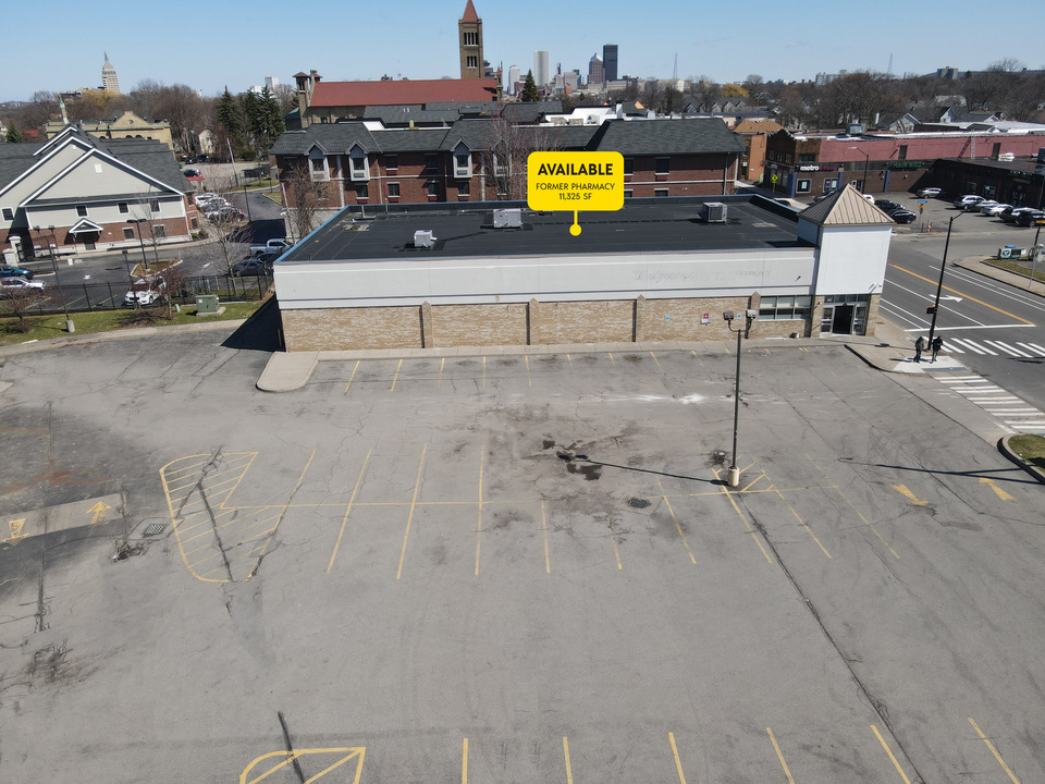 Former pharmacy located in the Bull's Head Neighborhood of Rochester NY. The Bull's Head Neighborhood is undergoing a large-scale redevelopment with over $10 million in public investment to clean brownfield sites. Lead by developer Dawson Co, the redevelopment will include 800 Market-rate housing units, as well as Commercial development, Urban farming, Grocery store, and Green space. ESL Federal Credit Union has already signed a commercial space lease and will open in 2025.