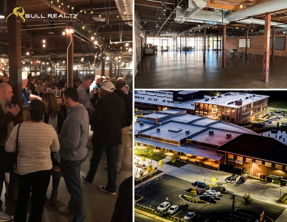 - Expansive open floorplan suited for multiple layouts: Banquet Hall, collaborative office, or full-service restaurant.