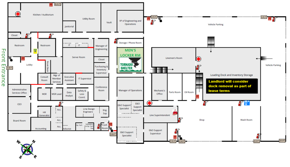 The extensively updated office area includes a full kitchen, large conference and presentation rooms, men’s & women’s restrooms, a locker room with showers, janitor closet, and fob-secured employee entrances. Optionally furnished and monitored by security cameras, the facility combines convenience and security.