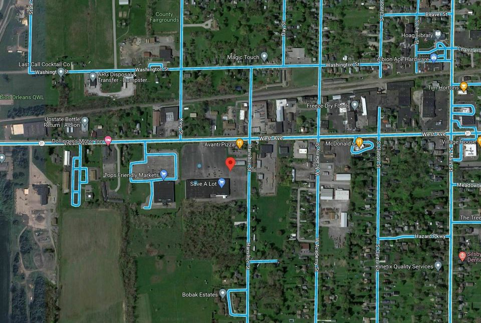 Busy plaza in Albion, NY. Tenants include Save-A-Lot and Dollar Tree. High traffic location on Route 31. Near the village and NYSDOC Orleans Correctional Facility.