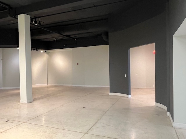 The first room is sizable, perfect for an attractive lobby, room for lounging, retail, or gathering. This area has an extraordinary non-bearing wall separating it from the next room. The next is large with extremely high ceilings. This room is completely clear with no columns.