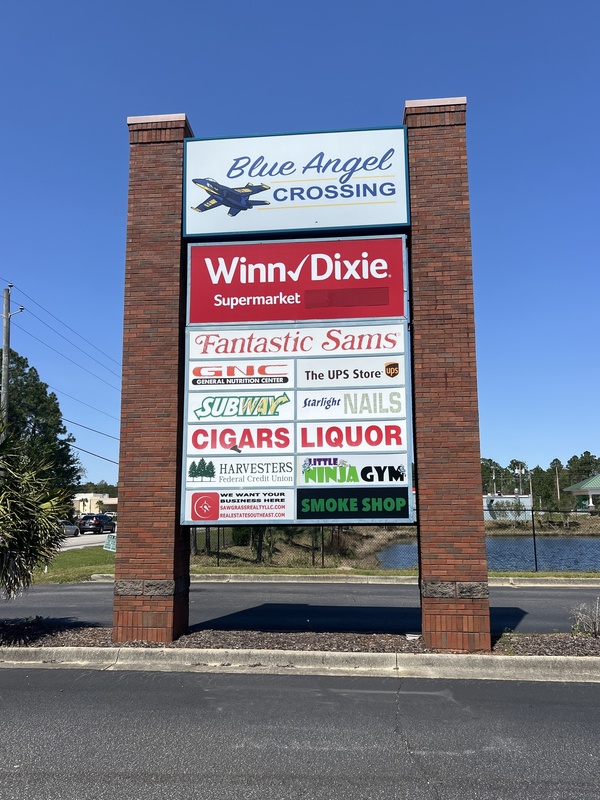 Blue Angel Crossings is well located with great access and visibility from Hwy. 98 & Blue Angel Pkwy (20,000+ cars per day). Anchored by a high performing Winn Dixie, co-tenants include Subway, GNC, Fusion Liquors, UPS, Fantastic Sams, Starlight Nails, Rock N' Roll Sushi and Jin Jin Chinese.