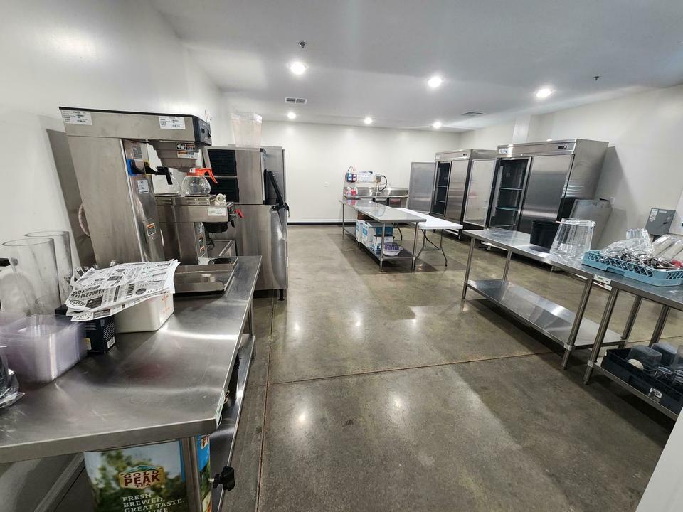 This large event center is in excellent condition and comes with all tables, chairs and equipment necessary for large gatherings of 350 or more people. The building has a built-in sound system, alarm and fire sprinklers. Floor plan includes large bride and groom prep/changing rooms, a caterer kitchen with warming cabinets and other necessary equipment.