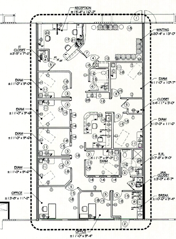 - Features 7 Wet Exam Rooms, Reception Area, Nurse Station/Charting Area, 2 Private Physician Offices, 2 Supply Closets (1 w/ Mop Sink), Lab/Procedure Room