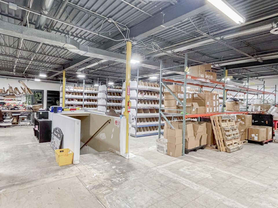 The front of the building features a retail showroom with 3,710 SF, updated finishes, modern lighting, and flows into the central office area with private offices and a break room. The 5,502 SF warehouse space offers a drive in door, restroom and access to the 2,592 SF basement level which is great for storage.