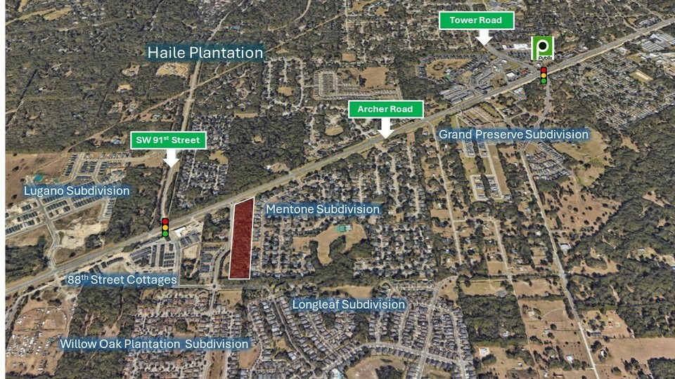 7.56-acre cottage development site located on S.W. Archer Road, near the University of Florida and major attractions such as Celebration Pointe and Butler Plaza, among others. The future land use designation for the property is Low-Density Residential (LDR), which permits a wide variety of residential uses. This includes single-family detached and attached unit types. Moreover, cottage neighborhoods and traditional neighborhood developments are also permitted.