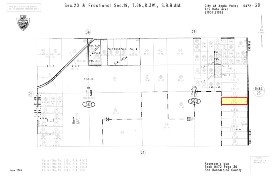 ±9.7 acres of unimproved apartment land for sale Dale Evans Rd in Apple Valley: APN: 0472-302-43. This flat and buildable lot is zoned Multifamily (R-M) and permits for a density of 2-20 dwelling units per net acre. Water, sewer, and power are available at site. Nearby amenities include Walmart, Target, Albertsons Grocery, Dollar Tree, Old Navy, Ross Dress For Less, Starbucks, Retro Bowl AV, Civic Center Park, Taco Bell, McDonalds, and many other restaurants. Apple Valley is home to the Brightline West Victor Valley Station, a high speed rail project connecting Las Vegas to Southern California. Brightline West recently received a $3 billion federal-state partnership grant and publicly announced the appointment of Siemens Mobility as the manufacture of the trains. Construction is expected to begin soon with the train in operation by late 2028. Buyer to verify all information contained herein. Agent and their representatives are not responsible for the accuracy of these claims.