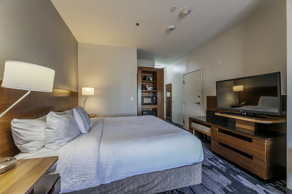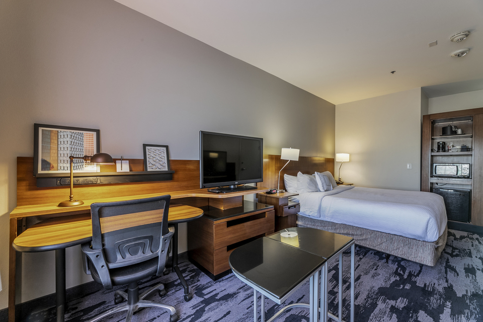 Fairfield Inn and Suites offers many amenities for guests to enjoy. There is an indoor pool, a fitness center, and a business center. Additional complimentary amenities include a free breakfast, coffee and tea in the lobby, free WiFi, and free parking. For dining, there is a Corner Market that serves as a sundry onsite and there are 24 restaurants within less than a mile of the hotel. Each guestrooms has a microwave, refrigerator, coffee maker, and flatscreen TV with premium cable channels included.