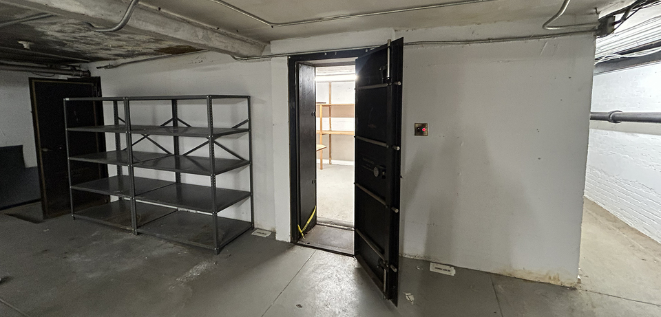 - Lower Level (±3,200 SF): Configured for storage with secure document storage and basement vault; suitable for training, support functions, or community room use