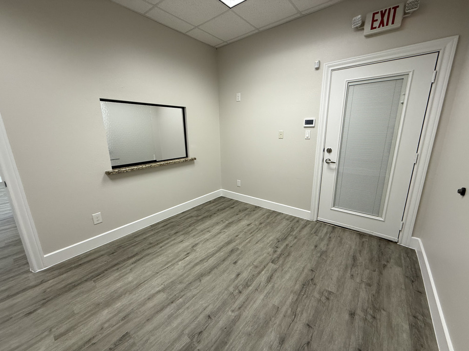 7109 FM 2920 Rd., Suite 200, Spring, TX 77379 (1,146 SF): Office 1 is approximately 12’ x 12’, Office 2 is currently two offices joined together, and Office 3 is set up as a lab at approximately 12’ x 12’ with an 8’ base cabinet, countertop, and sink. There is one ADA compliant restroom for clients, a small staff/ nurse’s station with built in desk, overhead cabinetry, and private employee restroom, reception/ admin office with sliding glass window, and a reception/ waiting room. Base rent is $22/ SF/ YR + current estimated NNN expenses @ $8.50/ SF/ YR, totaling $2,912.75 per month. First month’s rent and a security deposit equal to last month’s rent are due at signing. 36-month lease term minimum.