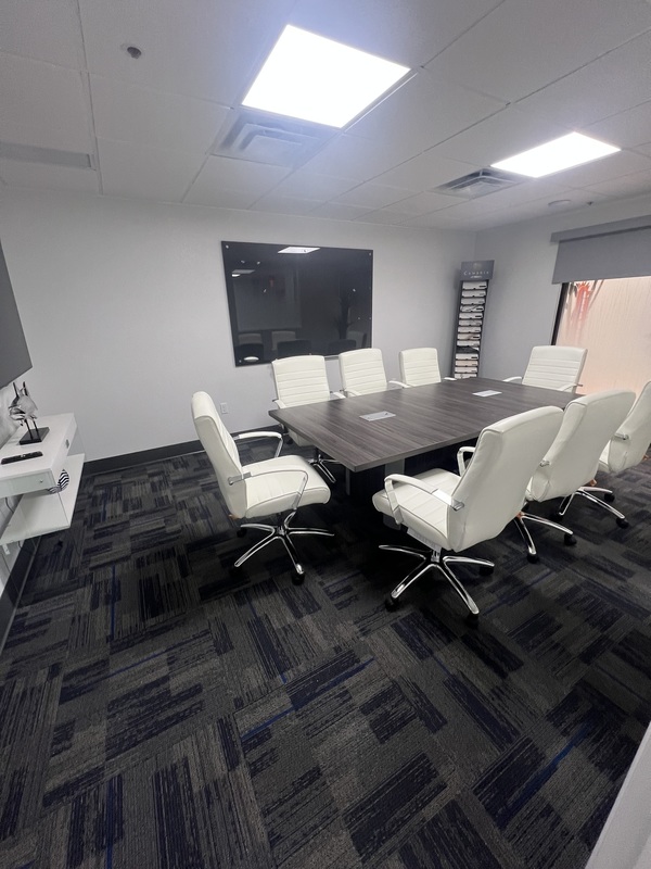 Recently renovated, upscale first-floor office space with a clean, efficient layout. Includes a professional reception area, spacious conference room, open bullpen, five private offices, kitchenette, and two restrooms. A beautifully landscaped atrium is just steps away, offering a relaxing common area setting.