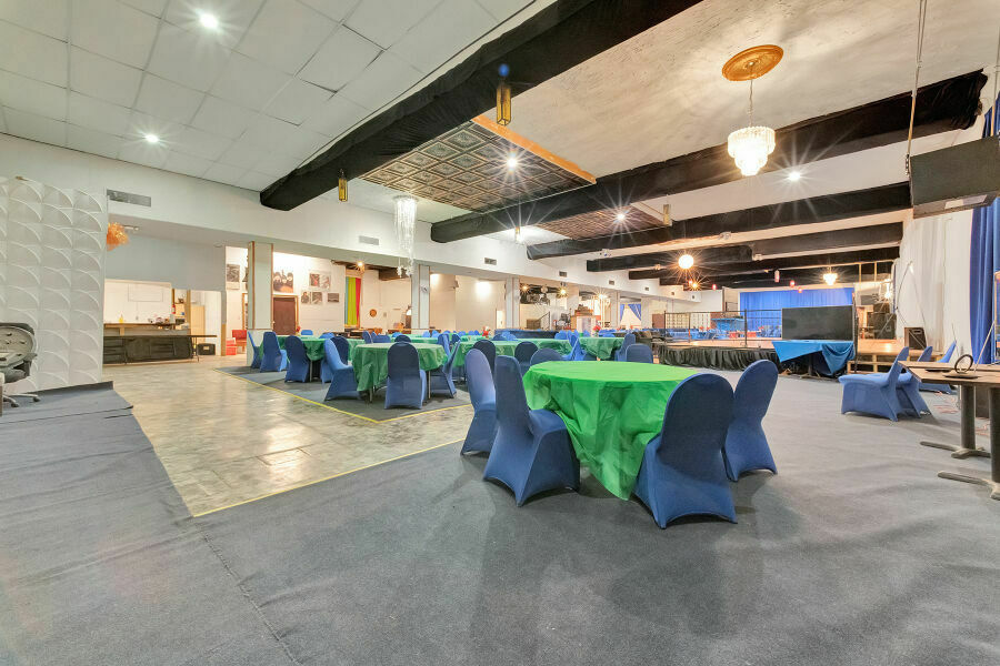 The building features a large ground-floor banquet and event hall, ideal for private events, corporate gatherings, performances, or community programming, complemented by flexible second-floor office suites well-suited for creative studios, co-working concepts, professional services, or boutique headquarters. The layout allows for multiple income streams and the potential to reposition or re-tenant based on market demand.