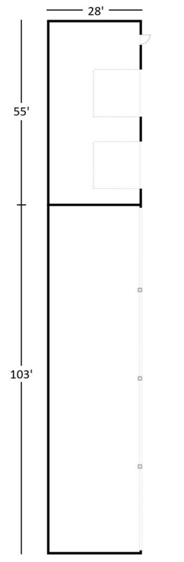 The back building is 4,424 square feet. One side is partially open and the balance is enclosed with (2) 14' x 14' drive-in doors.
