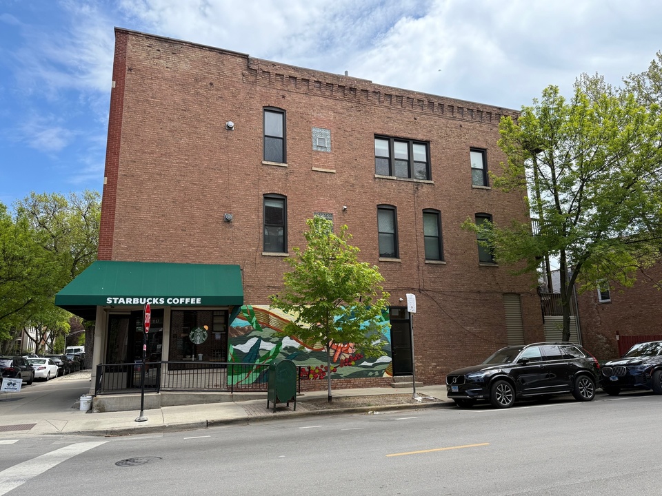 Two Buildings - 1157 W. Wrightwood, and coach house 2549 Racine. One Parcel #. Main building includes 1,500 Sf occupied by Starbucks, 2 one bedroom apartments and 2 two bedroom apartments. The coach house has approximately 1,200 SF+ with 600 sf on each of the two levels. It is currently leased to Core Pilates Studio.