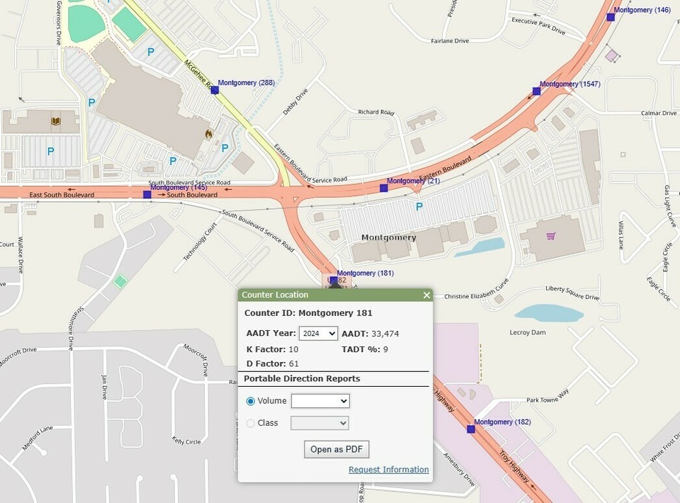 - High traffic counts: McGehee Rd – 18,183 VPD, South Blvd – 36,826 VPD, Troy Hwy – 33,474 VPD (ALDOT 2024)