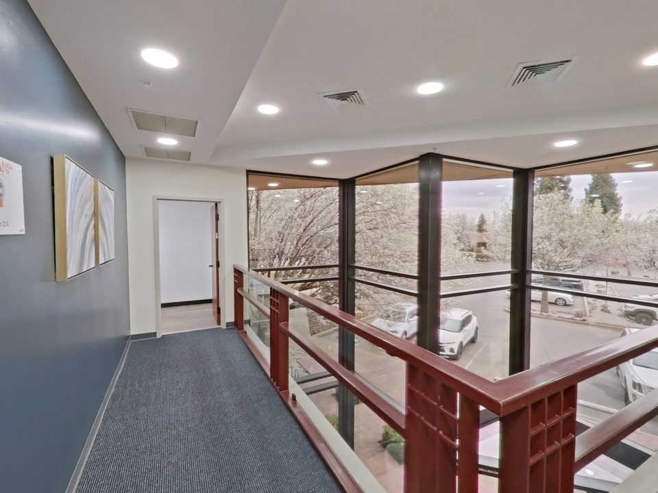 2195 Larkspur Lane in Redding, CA offers multiple second-floor executive office suites for lease, ranging from ±655 to ±1,206 square feet. Located at the corner of Larkspur Lane and Industrial Street, this well-maintained office building features modern finishes, large perimeter windows for natural light, and shared amenities including restrooms and a break room. The building is elevator-served for convenient access and supports a range of professional office uses.